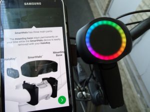 Ik zet mijn fiets op slot en zet mijn bluetooth even uit, want ik wil het alarm testen. Zodra ik de fiets aanraak flitsen de lampjes bovenop de Smarthalo aan en klinkt een zachte buzzer. Hmmm, is dit nou het alarm dat mijn fiets moet beschermen van fietsendieven? Toch nog maar eens bewegen. Na ca. 10 seconden het apparaat bewogen te hebben klinkt een mega hard geluid en het hele plein kijkt naar mijn fiets en mijn pogingen om het alarm uit te zetten. Dit kan via de tapcode en door je smartphone weer te koppelen via bluetooth. Dit laatste duurt altijd even een paar seconden, dus ruim een halve minuut had ik de volledige aandacht van het hele plein. Alarm functioneert dus prima en er is geen fietsendief die de Smarthalo zal proberen te demonteren of jouw fiets mee te nemen. Liever geen alarm? Dit is eenvoudig via de app uit te schakelen.